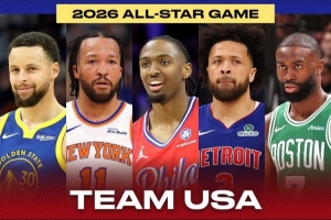 若按照世界队和美国队分队,美国队将是库里、布伦森、坎宁安、杰伦·布朗、马克西;世界队则是东契奇、亚历山大、字母哥、文班还有约基奇。