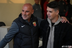 据海港新闻官赵昊晨社媒消息,前海港外援奥斯卡赛前来到海港在卡塔尔的驻地探班,并现场观看了与泽尼特的热身赛。