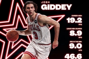 公牛官推写道:“只有两位球员场均拿到19分8.5篮板9.0助攻,分别是吉迪和约基奇。”基迪则回复🫶🏼感谢。