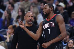 体育资讯1月24日讯 NBA常规赛,火箭客场111-104战胜活塞,赛后杜兰特接受采访。