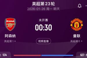 曼联暂排第五只落后利物浦1分,此前曼联就有多次机会取胜即进前四,但都没有把握住,不过这轮他们的对手是榜首阿森纳。