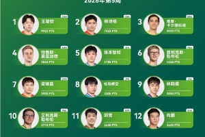 WTT常规挑战赛马斯喀特站男单冠军温瑞博排名上升7个名次位列第24,刷新个人职业生涯排名新高;亚军帕特里克·弗朗西斯卡排名上升1个名次位列第19;八强黄镇廷排名上升13个名次位列第45。