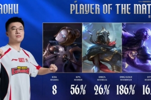 WBG 2比1 TES,小虎今天终于爆发了,拿到本场POM。