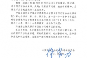 中国足球协会纪律与道德委员会依据《中国足球协会纪律准则》第七十四条、第二条、第五条、第一百一十一条和《中国足球协会道德与公平竞赛委员会工作规则(试行)》第二十五条、第二十六条、第二十八条等规定,作出如下处罚: