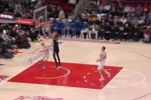 GIF-福克斯长传越过两人,文班亚马接球转身双手暴扣