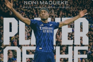 体育资讯2月1日讯 阿森纳客场4-0击败利兹联,俱乐部官方消息马杜埃凯当选本场比赛最佳球员。