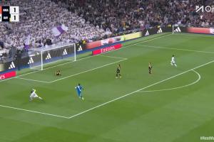 体育资讯02月01日讯 皇马vs巴列卡诺第68分钟,皇马反击直塞,巴列卡诺门将出击,姆巴佩人球分过过掉门将,左脚打空门击中横梁!