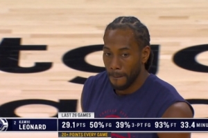快船客场挑战太阳,转播方晒出伦纳德过去26场数据: