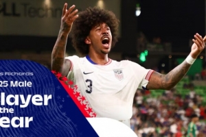 体育资讯1月15日讯 美国足协官方宣布,25岁的水晶宫中卫理查兹当选为2025年美国足球先生。