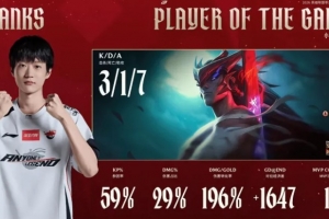 Shanks永恩打出3/1/7战绩,斩获AL对阵BLG第二局MVP