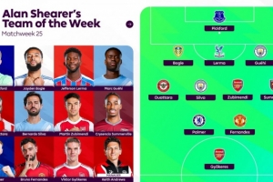 体育资讯2月10日讯 英超第25轮已经战罢,阿兰·希勒也评出了自己心目中的第25轮联赛最佳阵容。