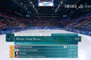 体育资讯02月10日讯 米兰冬奥会短道速滑男女混合团体接力B组决赛,荷兰队打破奥运会纪录,获得第五名。