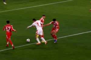 斯坦尼西奇和安东尼奥·努萨发生身体碰撞,努萨随后倒地,倒在了禁区内。裁判丹尼尔·西伯特最初允许比赛继续进行,之后才暂停比赛。