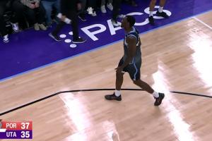 威廉姆斯先是被吹进攻拉拽犯规,然后骂裁判“Bitc* ass”,并把球砸向裁判,被直接驱逐!