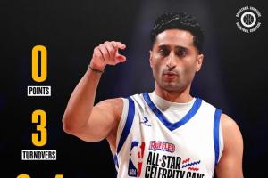 体育资讯02月14日讯 NBA全明星周末名人赛,名记Shams代表字母哥队参赛,全场出战21分钟4投0中没有得分,还出现3次失误。
