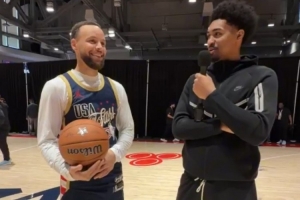 体育资讯2月16日讯 全明星期间,马刺球员哈珀采访了库里。