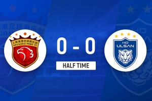 上半场比赛结束,上海海港0-0蔚山HD。