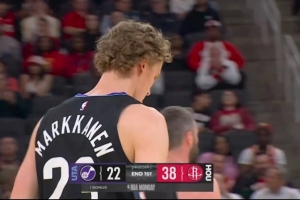 第一节,火箭全队出现多达9次失误,但仍靠着火热手感打花比赛,全队21投14中,三分13中8,小贾巴里·史密斯独得14分。