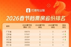 2026春节档省份票房出炉:广东省位列第一,过去五年均为江苏省