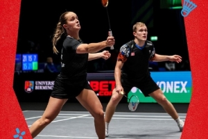 体育资讯3月6日讯 2026全英羽毛球公开赛混双1/8决赛,冯彦哲/黄东萍组合1-2不敌丹麦组合麦斯/布施,无缘混双8强。