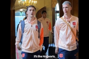 体育资讯3月9日讯 本周三凌晨4点,欧冠1/8决赛首回合,巴萨将客战纽卡。目前,巴萨全队已经抵达了纽卡。
