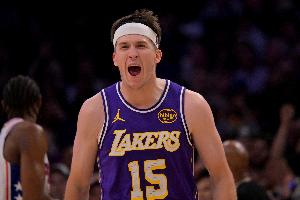 第三节,湖人后卫里夫斯火力全开,单节6中5独得16分,上半场里夫斯仅拿到2分。