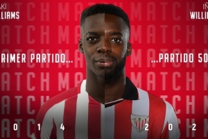 体育资讯3月14日讯 毕尔巴鄂竞技官推发文,球队青训前锋伊纳基·威廉姆斯迎来其毕巴生涯500场里程碑。