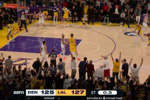 在约基奇2分追平后,东契奇撤步跳投绝杀,掘金0.5秒反绝杀不中,湖人拒绝17分大逆转。