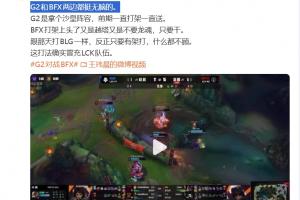 体育资讯3月20日讯 2026的先锋赛G2目前2-0领先BFX,赛后媒体人王玮晨表示:G2和BFX两边都挺无脑的,BFX这打法确实冒充LCK队伍。