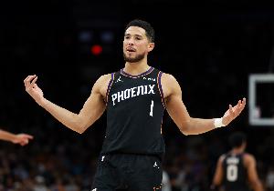 本场比赛布克手感一般,但频造杀伤,出战38分钟18投7中,三分5中1,罚球14中12砍下27分4篮板4助攻,也有4次失误,正负值-3。
