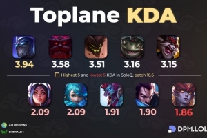 全球统计单排KDA最高和最低的5位上单英雄:慎最高、新版龙女最低